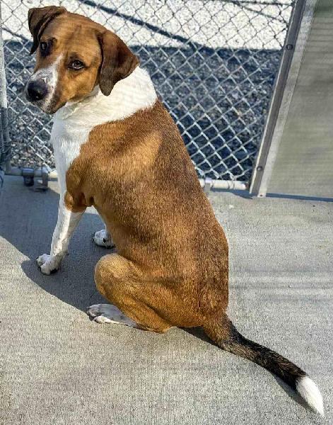 Handsome Raoul came to us after his owner had to make the heartbreaking decision to surrender him. Unfortunately, his owner was no longer able to care for him and has tasked us with finding Raoul a new home. Raoul has never really been around other animals and is currently very nervous with all the other dogs barking in the kennel. But look at those eyes! He is an easy-going gentleman with new people. Raoul, Hound Mix, Adult, Male, Brown, White. Vaccinations up to date.RESCUED!